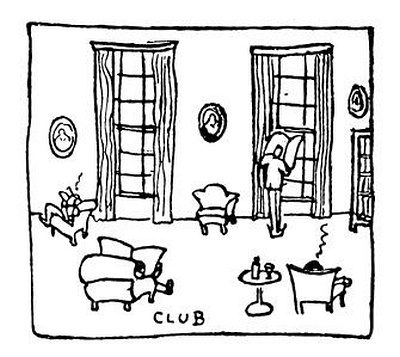 Přišel jsem ještě do jiných klubů; je jich tu mnoho set, různého chlupu a poslání, ale ty lepší jsou vesměs na Piccadilly nebo v sousedství a mají staré kožené lenošky, obřad mlčení, dokonalé sklepníky a klauzuru vůči ženským; jak vidíte, jsou to veliké přednosti. Mimoto jsou stavěny v klasickém slohu z kamene, který je černý kouřem a bílý deštěm; uvnitř je dobrá kuchyně, ohromné sály, ticho, tradice, teplá a studená voda, nějaké portréty a kulečníky a mnoho jiných památných věcí. Jsou také politické kluby a ženské kluby a noční kluby, ale tam jsem nebyl.