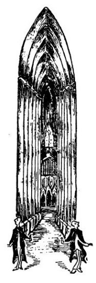 Katedrálová města jsou malá města s velkými katedrálami, ve kterých se konají nesmírně dlouhé bohoslužby; i přijde kostelník a nařídí turistovi, aby nekoukal na strop a pilíře, nýbrž sedl si do lavice a poslouchal, co tam v chóru odzpěvují. Tento zvyk mají kostelníci v Ely, Lincolnu, Yorku a Durhamu; nevím, co dělají jinde, neboť jinde jsem nebyl. Slyšel jsem ohromné množství litanií, žalmů, anthem[4] a písní a všiml jsem si, že anglické katedrály mají obyčejně dřevěné stropy, následkem čehož není u nich vyvinut opěrný systém kontinentální gotiky; že perpendikulární pilíře v Anglii mají vzhled složitého potrubí; že protestantští kostelníci jsou tvrdší než katoličtí a potrpí si stejně na spropitné jako kostelníci italští, jenže jsouce gentlemany – musejí dostat větší; že reformace vykonala velmi prasácké dílo, když zurážela hlavy soch a odstranila z kostelů obrazy a jiné pohanské modlářství. Následkem toho jsou anglické katedrály holé a divné, jako by se do nich nikdo nenastěhoval. A ještě horší je, že uprostřed hlavní lodi je uzavřený chór pro kněze, ministranty a elitu farnosti; ostatní lid sedí dole a nevidí nic než víceméně vyřezávané stěny chóru a zadek varhan; hlavní loď je tím důkladně porušena, celkový prostor je rozříznut vedví; jakživ jsem neviděl něco tak absurdního. Ale protože tam v chóru ještě pořád něco zpívají, je nutno se sebrat a jít ven.