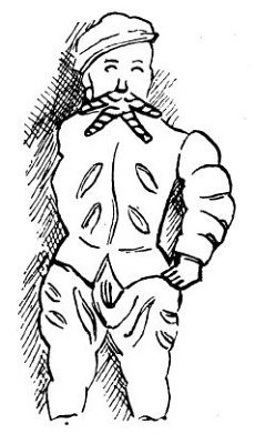 Podařilo se mi nakreslit také párek Skotů, muže se ženou. Skoti jsou většinou zavalití, kvetoucích lící a silných šíjí; mají mnoho dětí a sympatická, starodávná jména klanů. Sukénky čili kilty nosí jen na vojně nebo hrají-li na dudy. Ty kostkované plédy se jmenují tartany a jsou to vlastně jakési erby; každý klan má tartan jiných barev, což zajisté byl kdysi dostatečný důvod, aby se vzájemně vyvražďoval s klanem jinak kostkovaným.