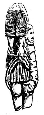 Velmi zvláštní je jiná socha, o které děda kastelán patrně podle starých balad vypravoval, že představuje hubatou ženu; a protože to už dál nešlo, rozhodl šerif, aby ji všichni postižení veřejně vyplácali na zadek, což prý řečená socha znázorňuje. Rozcházím se s místní autoritou potud, že ta socha se mi zdá daleko starší než šerif, hubatá žena i hrádek Finlarig; myslím, že představuje něco starodávného, snad muka zatracenců v pekle. Ostatně jsem ji pečlivě nakreslil.