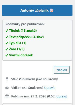 Byla přidána nová funkce, nazvaná “Autorův zápisník”. Najdete ji vedle editoru pro zadávání textu příspěvku, nad boxem pro publikování.